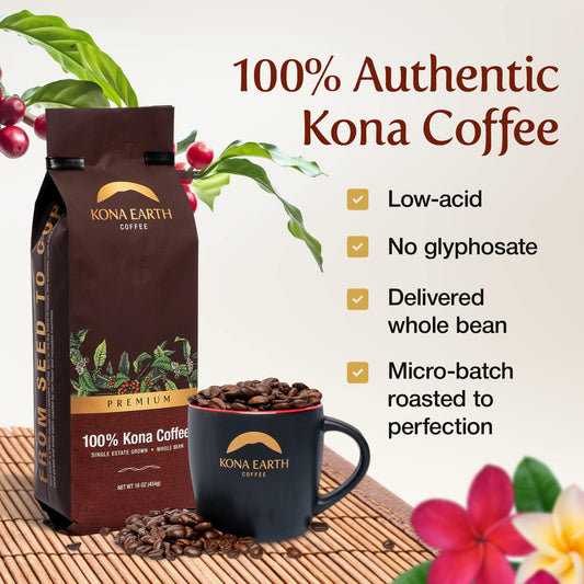 There’s no coffee like Kona Earth coffee. Thank goodness Kona Earth delivers to the mainland so I can enjoy Kona Premium Coffee every morning. It’s fresh, full-bodied, delicious…the best way to wake up!
