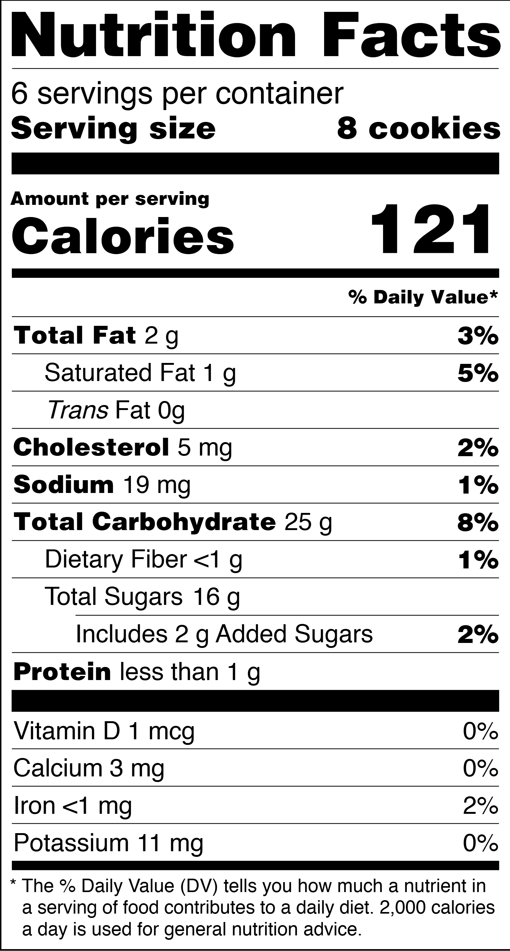 Please note: These cookies are processed in a facility handling wheat, egg, peanuts, tree nuts, and coconut.